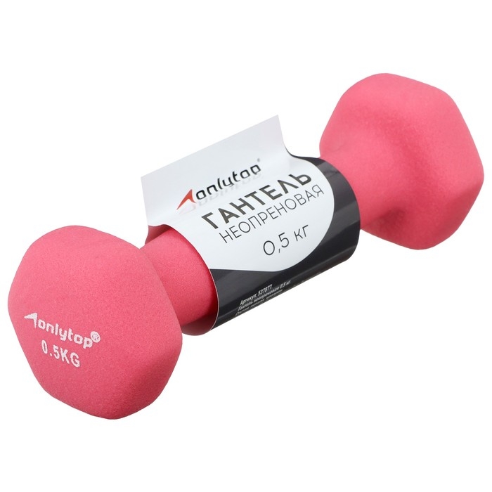 Гантель неопреновая ONLYTOP, 0,5 кг, цвет розовый