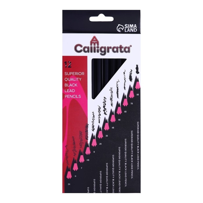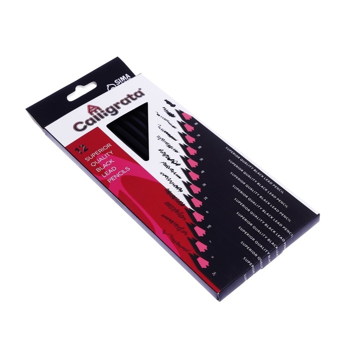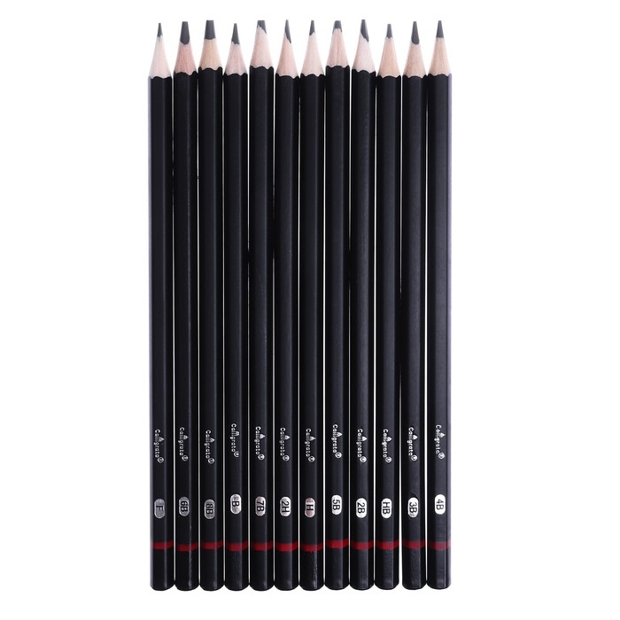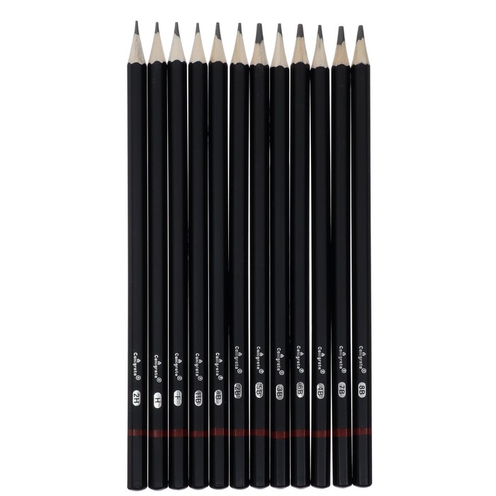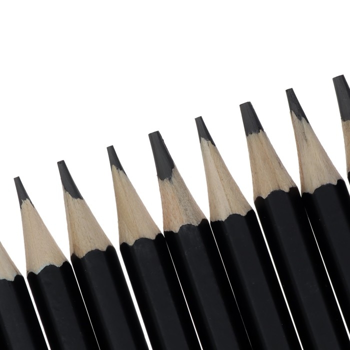 Набор карандашей чернографитных, 12 штук, твёрдость 2Н - 8В, гранённые, заточенные, в картонной коробке