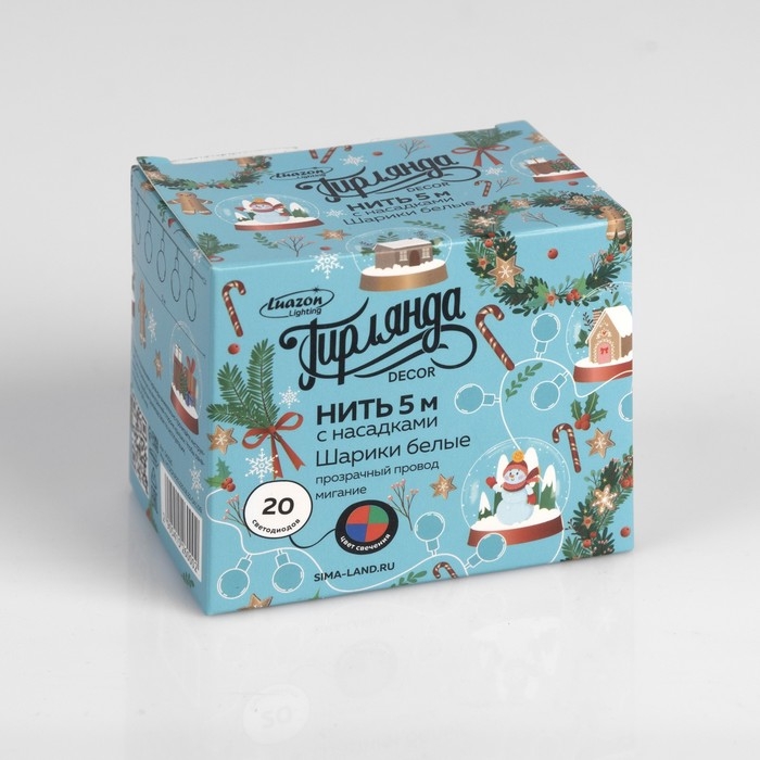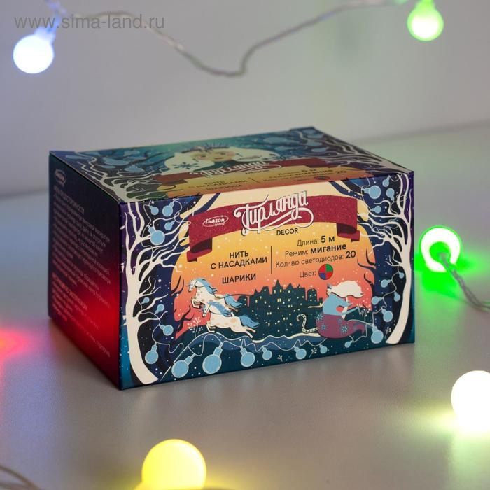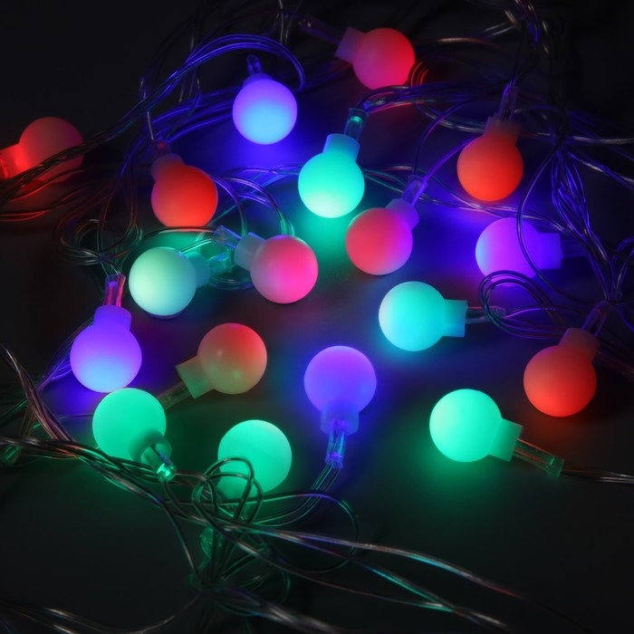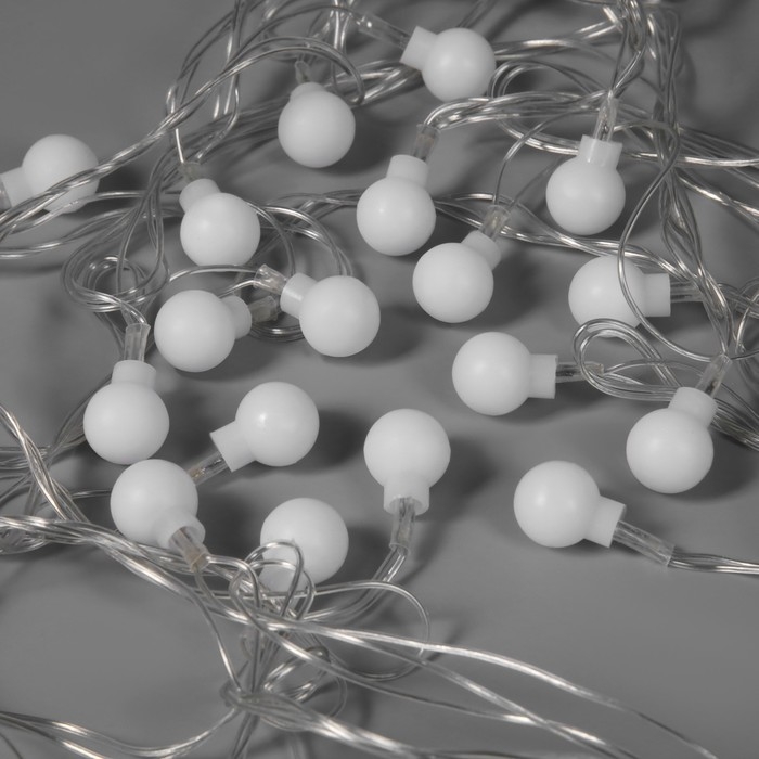 Гирлянда «Нить» 5 м с насадками «Шарики белые», IP20, прозрачная нить, 20 LED, свечение мульти (RG/RB), мигание, 220 В