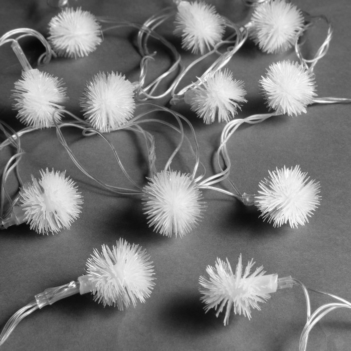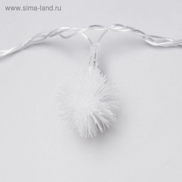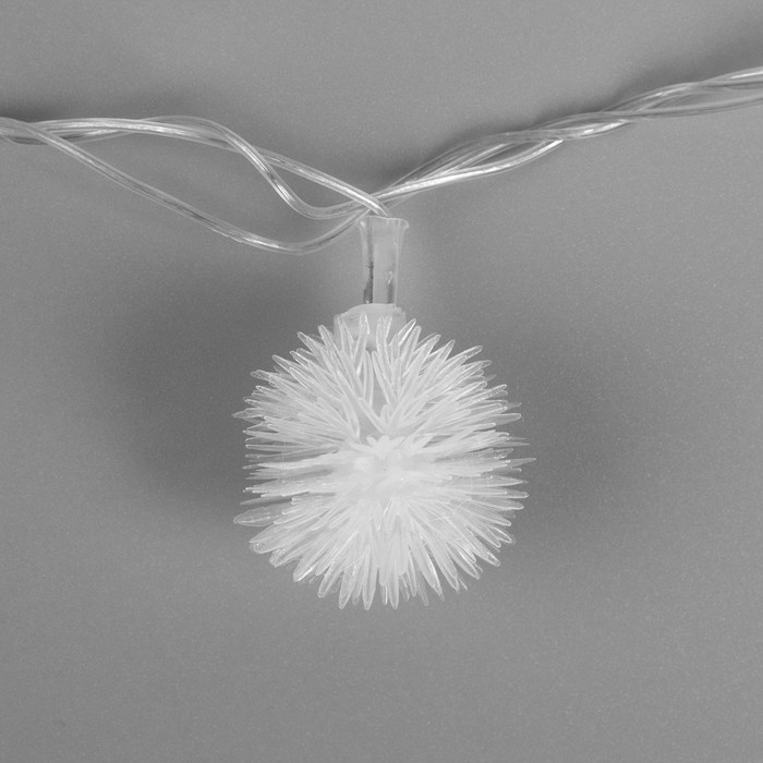 Гирлянда «Нить» 5 м с насадками «Ёжики белые», IP20, прозрачная нить, 30 LED, свечение белое, 8 режимов, 220 В