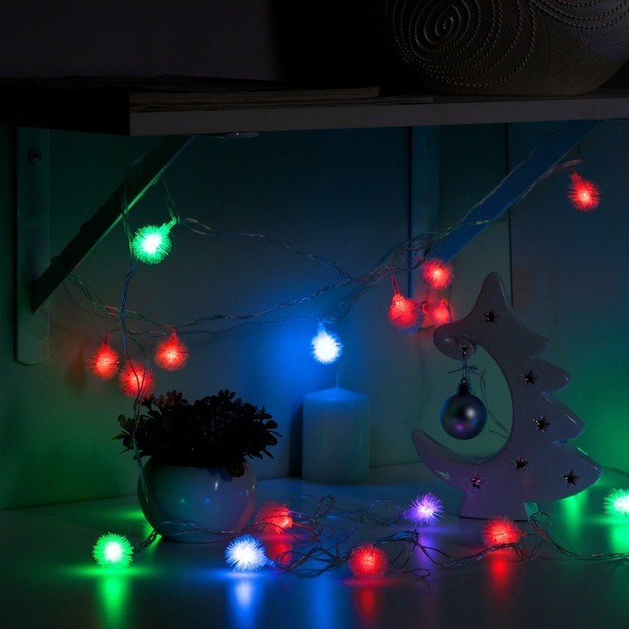 Гирлянда «Нить» 5 м с насадками «Ёжики», IP20, прозрачная нить, 20 LED, свечение мульти (RG/RB), мигание, 220 В