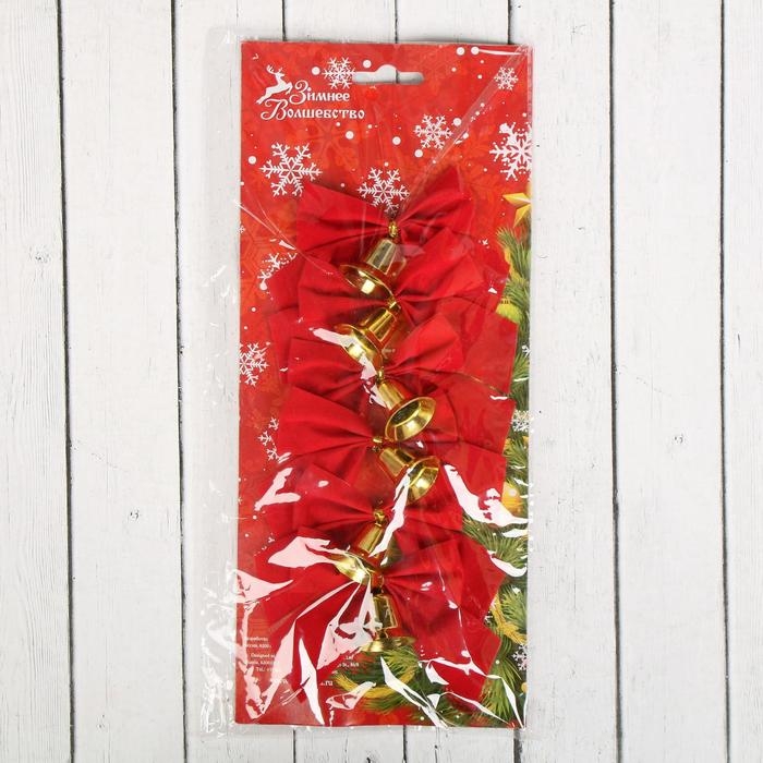 Украшение ёлочное "Бантик с колокольчиком" (набор 6 шт) 10 см, красный