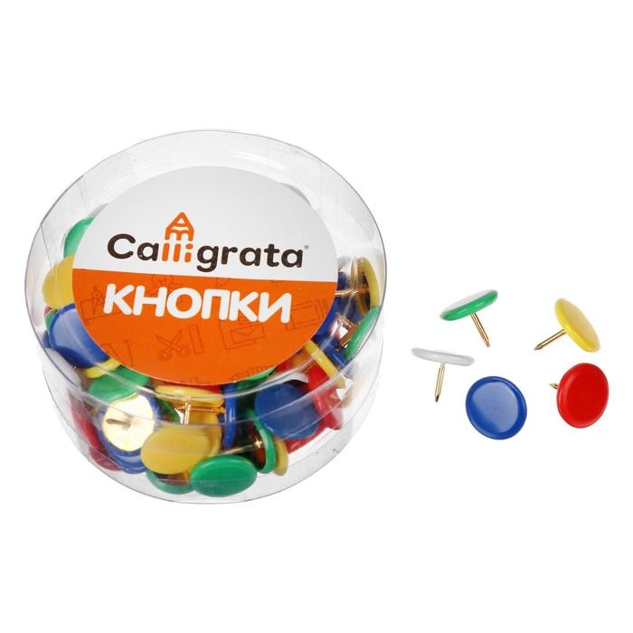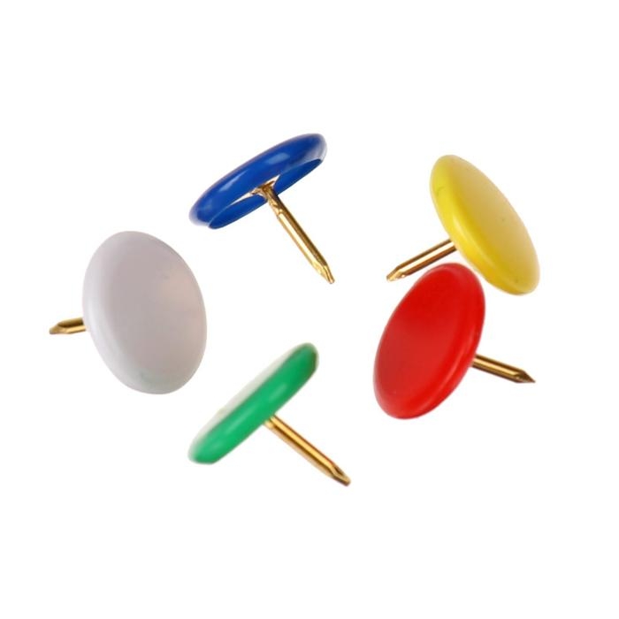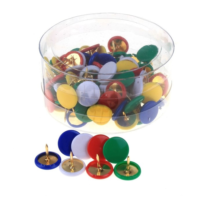 Кнопки канцелярские 10 мм с цветной пластиковой головкой, в пластиковой баночке 100 штук