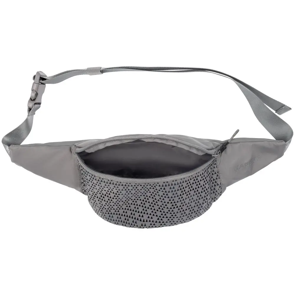 Цвета сумок в коллекции Triangel позволяют создавать модные монохромные или контрастные сочетания с другими изделиями бренда Manevr. Поясные сумки изготовлены из шелковистого полиэстера, в отделке использована лазерная перфорация паттерна.