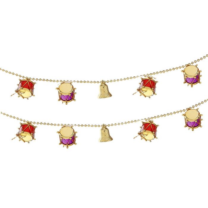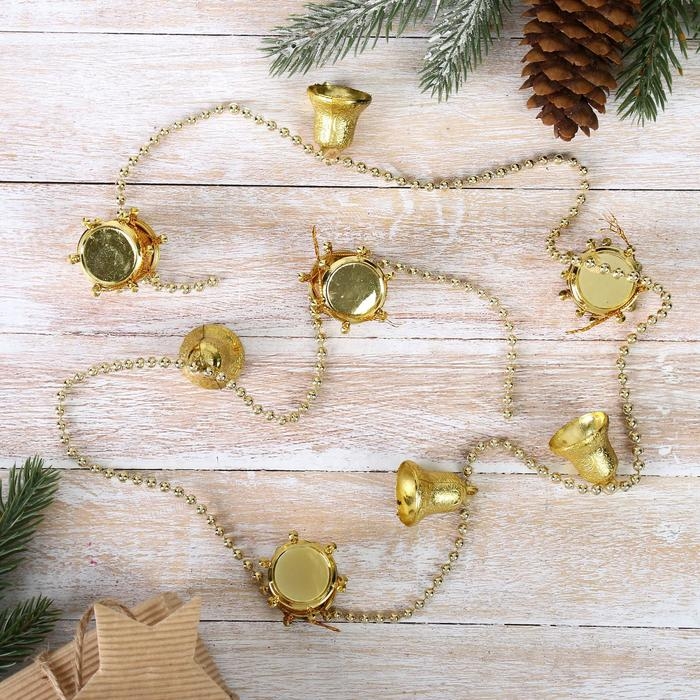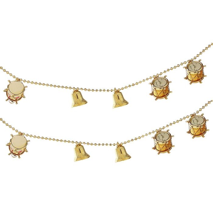 Нить маленьких шариков, украшенная золотыми колокольчиками и миниатюрными барабанами, преобразит новогоднюю ёлочку и сделает её нарядной. Бусы на ёлку 90 см "Барабаны" золото могут использоваться и как самостоятельный элемент декора. Например, ими можно украсить мебель, окна или стены. Из тонких бус легко выложить любые фигуры или слова, стоит лишь дать волю фантазии.