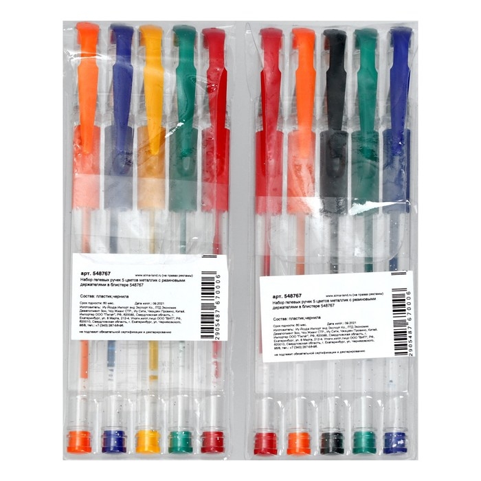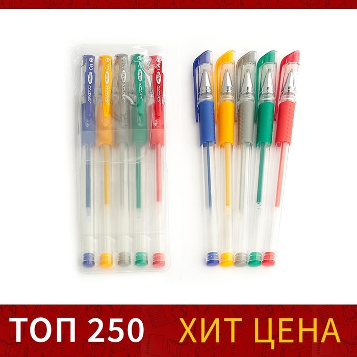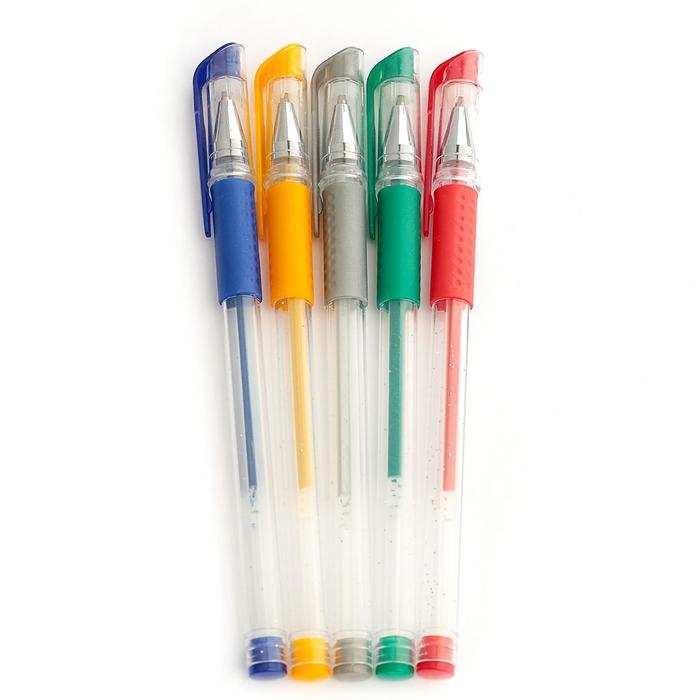 Набор гелевых ручек, 5 цветов, металлик,с резиновыми держателями, МИКС