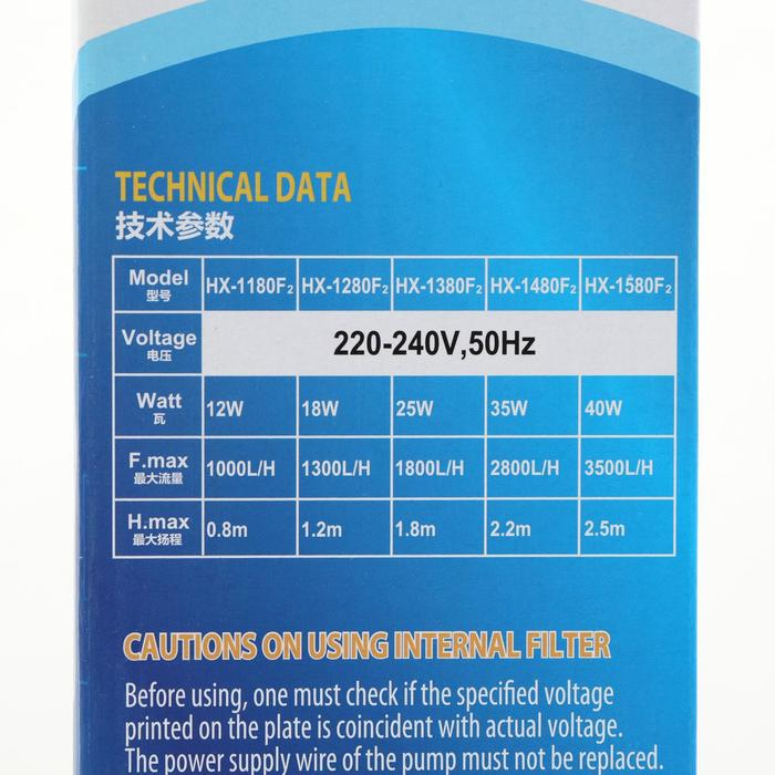 Фильтр внутренний Sea Star HX-1380F2, 1800 л/ч, 25 Вт, высота подъема воды 1,8 м