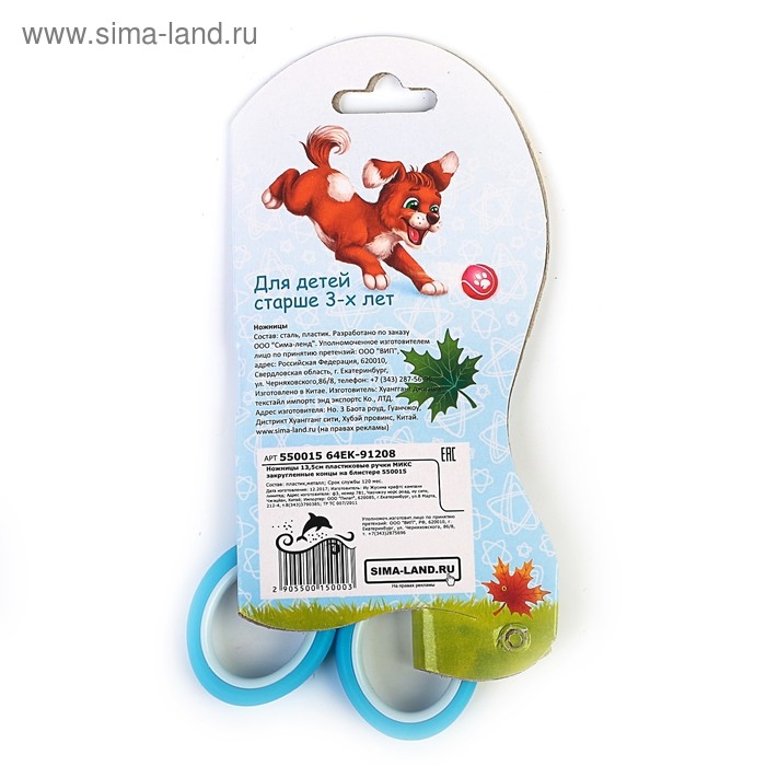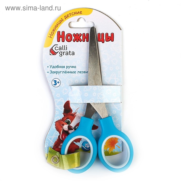 Ножницы канцелярские 13.5 см, пластиковые ручки, закругленные концы, блистер, корпус МИКС
