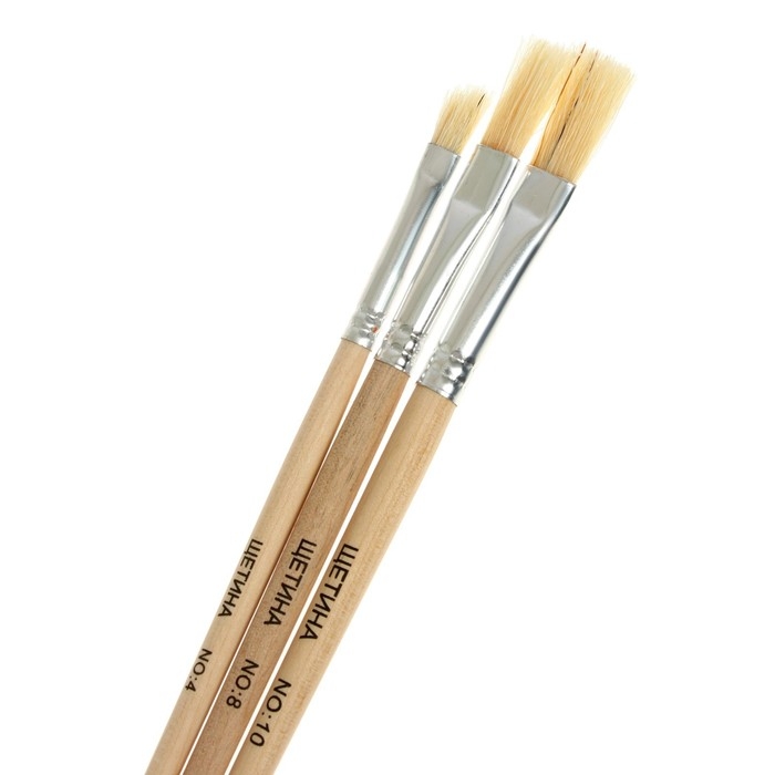 Набор кистей щетина 3 штуки: № 4, 8, 10, плоские