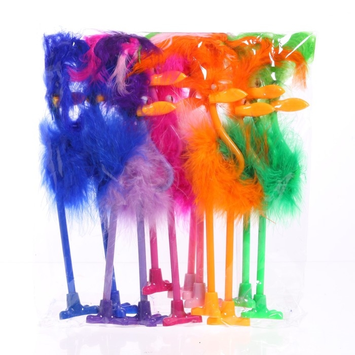 Ручка-прикол Calligrata "Пух - Страус", шариковая, с хохолком, МИКС