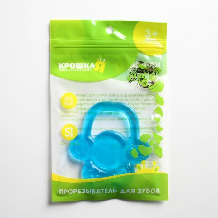 Прорезыватель снимает неприятные ощущения в период появления первых зубов. Также изделие подготовит ребёнка к процессу жевания, поспособствует формированию правильного прикуса и развитию мелкой моторики рук.