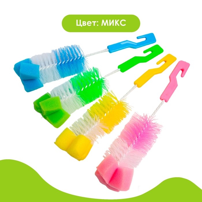 Ёршик для бутылочек с губкой, цвета МИКС