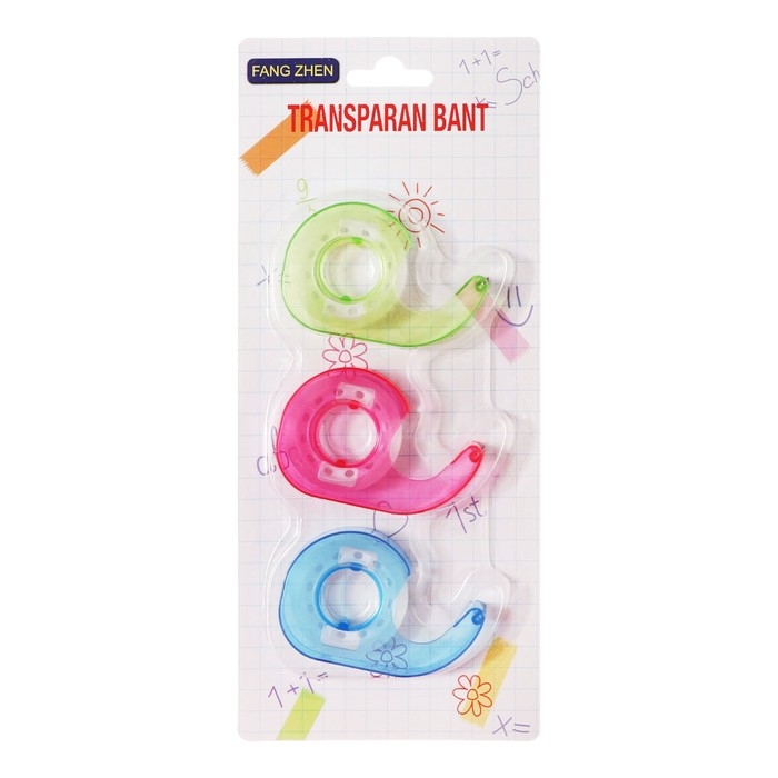 Диспенсер с клейкой лентой, цена за 3 штуки, блистер, МИКС
