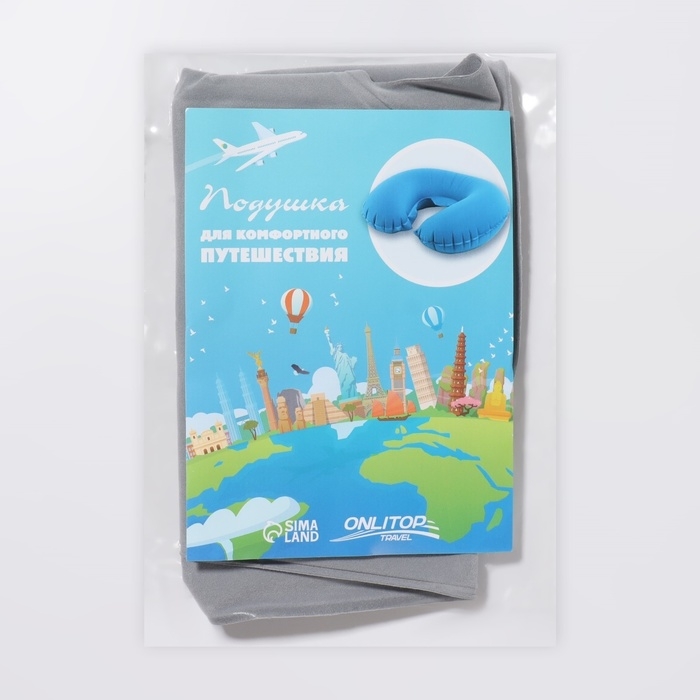 Подушка для шеи дорожная, надувная, с насосом, 47 × 27 см, цвет МИКСУдалила картонная коробка,