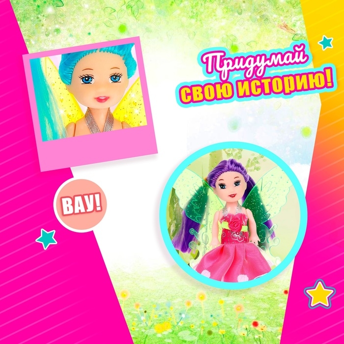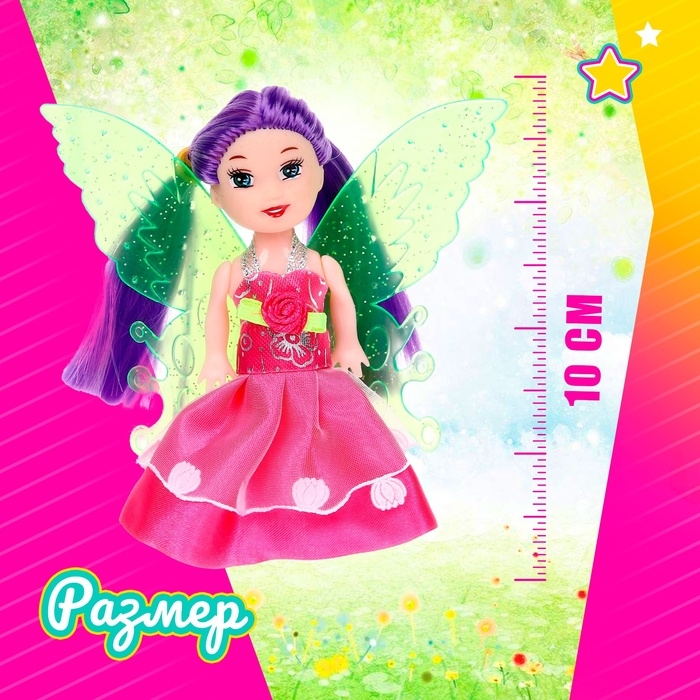Красивая волшебная гостья в прелестном наряде покорит сердце малышки и заставит глазки восторженно блестеть. Крошка не сможет оторваться от куколки и её чудесных крылышек.