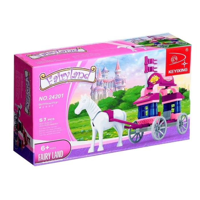 - Набор содержит 57 деталей и позволяет сконструировать карету и лошадку.