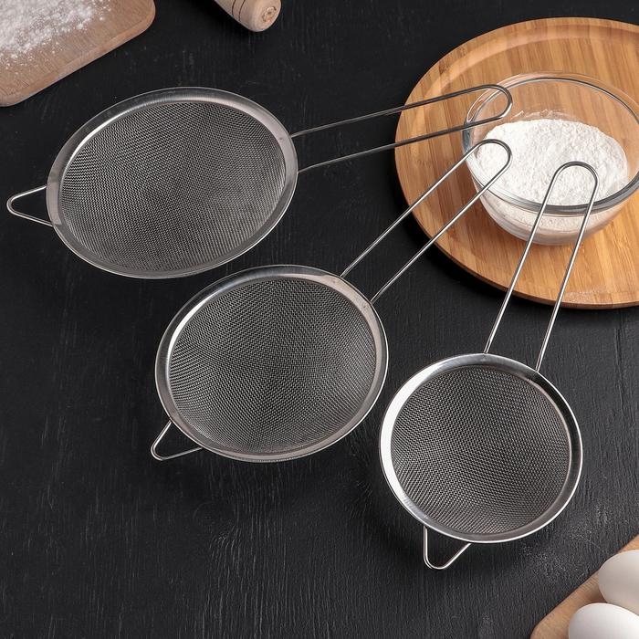 Набор сит Доляна, 3 шт, d=12 см,14 см, 16 см, цвет серебристый