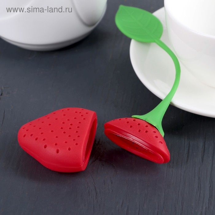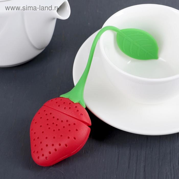 Ситечко для чая Доляна «Клубника», 5×19 см, цвет красный