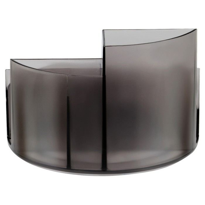 Объемные, удобно расположенные секции разной высоты, гладкая глянцевая поверхность, 6 отделений для канцелярских мелочей и пишущих принадлежностей, визиток и листков для записей. Прочный корпус подставки.