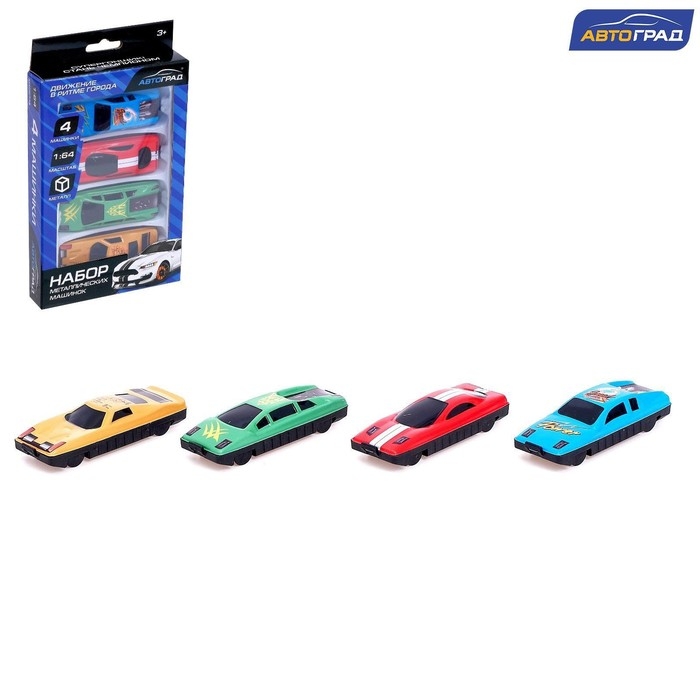 Набор металлических машин «Гонка», 4 шт., цвета МИКС