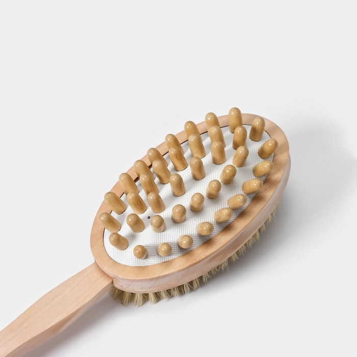 Щётка массажная для тела Доляна, с ручкой и массажёром, натуральная щетина