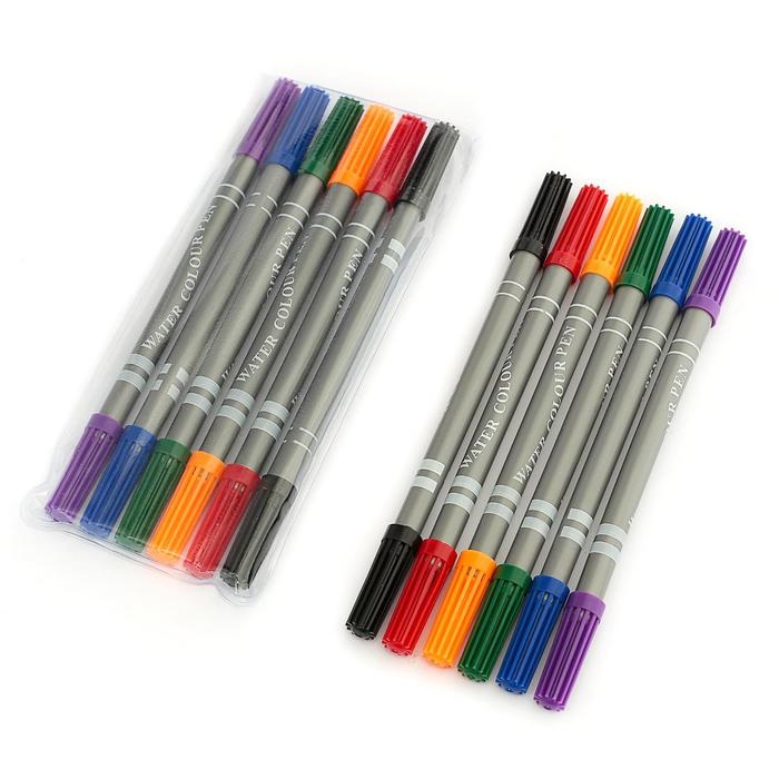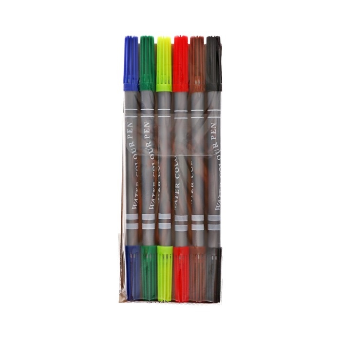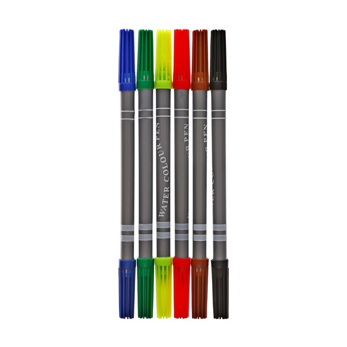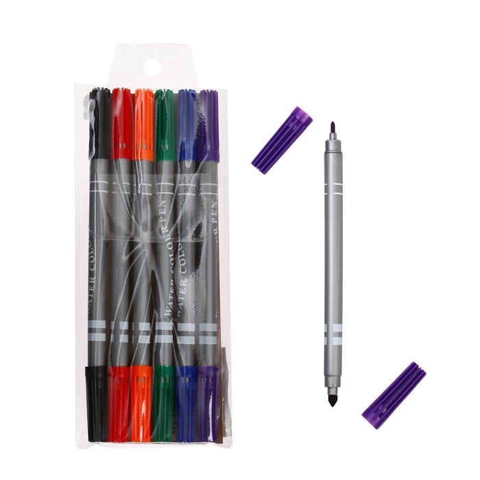 Фломастеры, 6 цветов, двусторонние, круглый наконечник 2 мм/5 мм, вентилируемый колпачок, в блистере