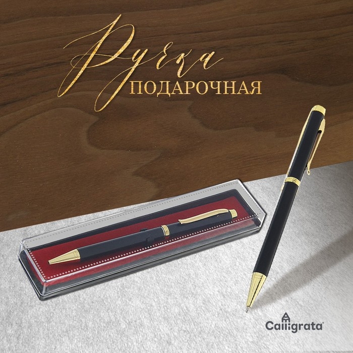 Ручка подарочная шариковая Calligrata, в кожзам футляре ПБ U,поворотная, корпус черный с золотом