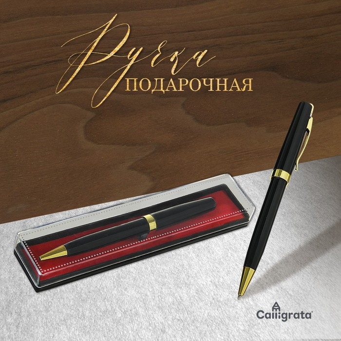 Ручка подарочная шариковая Calligrata, в кожзам футляре ПБ U,поворотная, корпус черный с золотом