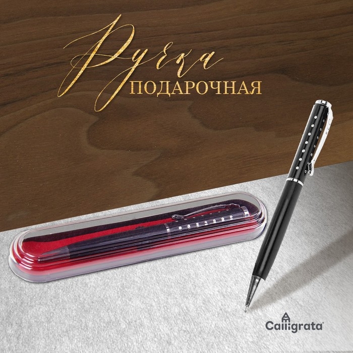Ручка подарочная шариковая Calligrata, в кожзам футляре ПБ U,поворотная, корпус черный с золотом
