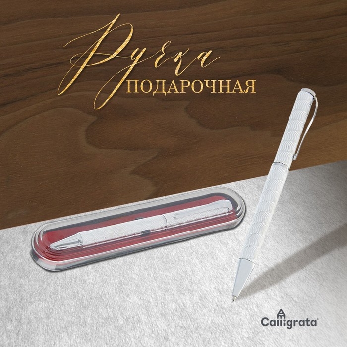 Ручка подарочная шариковая Calligrata, в кожзам футляре ПБ U,поворотная, корпус черный с золотом