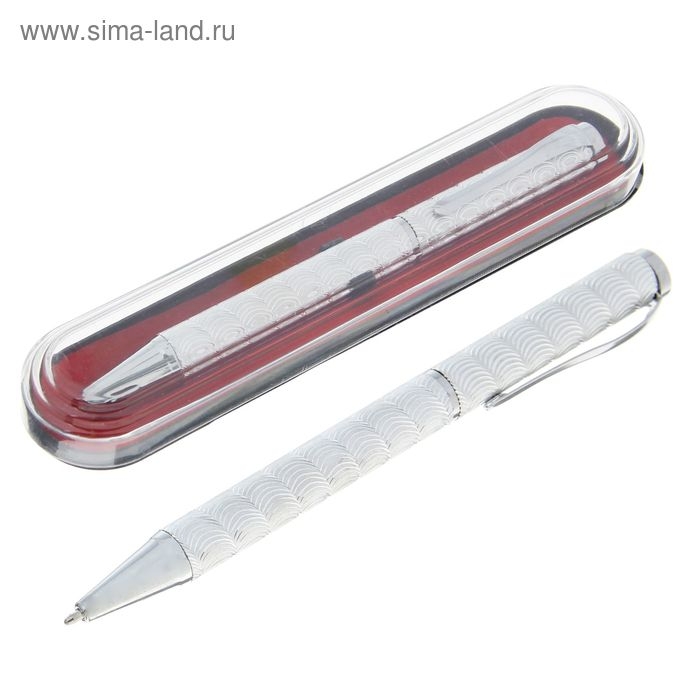 Ручка подарочная, шариковая "Супер" в пластиковом футляре, поворотная, серебристая