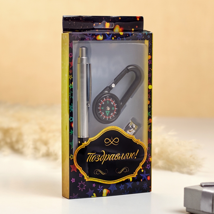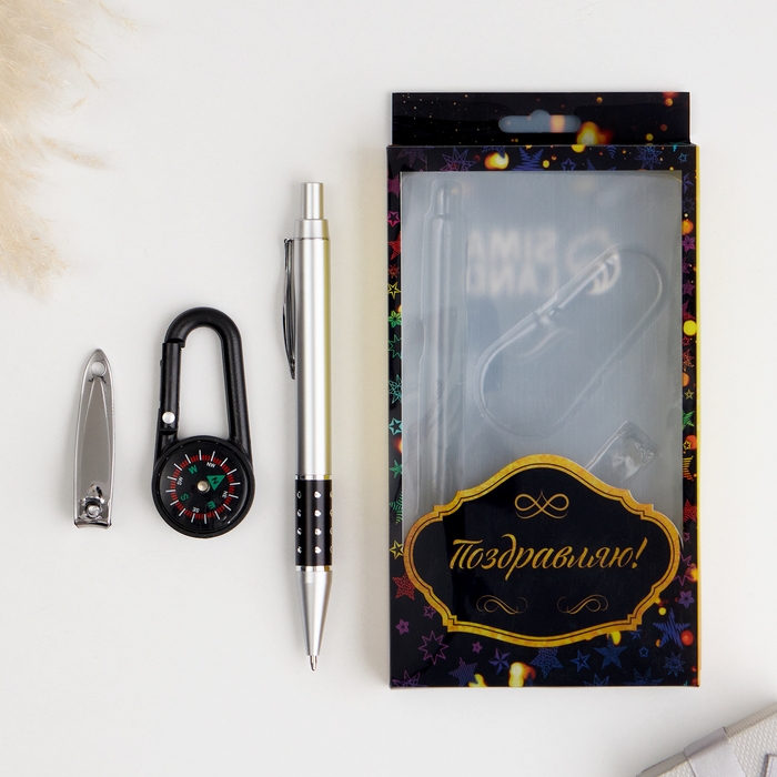 Набор подарочный 3в1 (ручка, кусачки, карабин-компас)