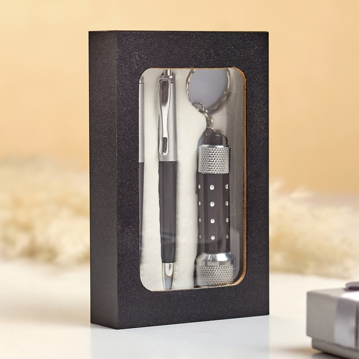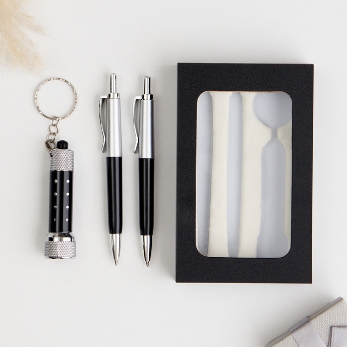 Набор подарочный 3в1 (2 ручки, фонарик черный)