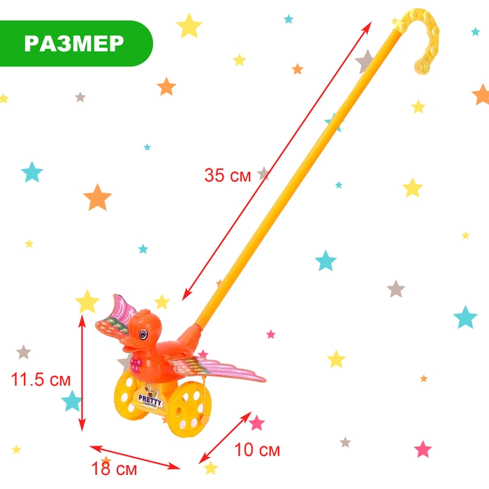 - Каталка на палке «Птичка» выполнена из качественных безопасных материалов. Яркая игрушка привлечёт внимание трогательным дизайном и надолго займёт малыша.