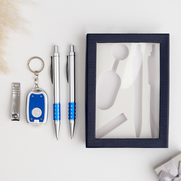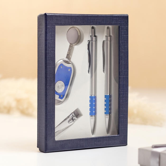 Набор подарочный 4в1 (2 ручки, кусачки, фонарик синий)