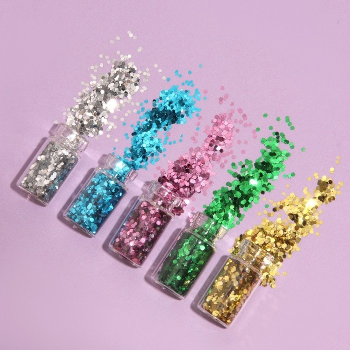 Набор блесток для декора, мелкий помол, цвет алый, 6 штук