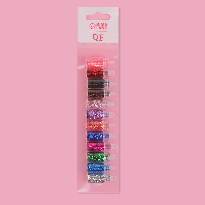 Блёстки для декора ногтей «Сияние», набор 12 бутылочек, средние, разноцветные