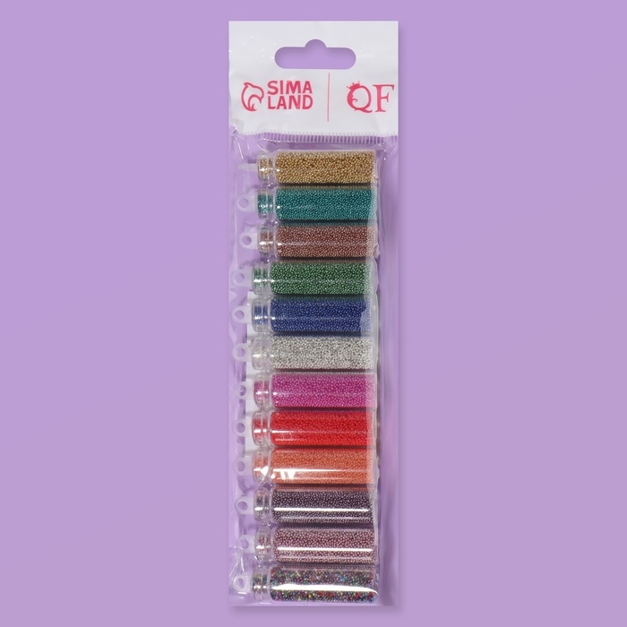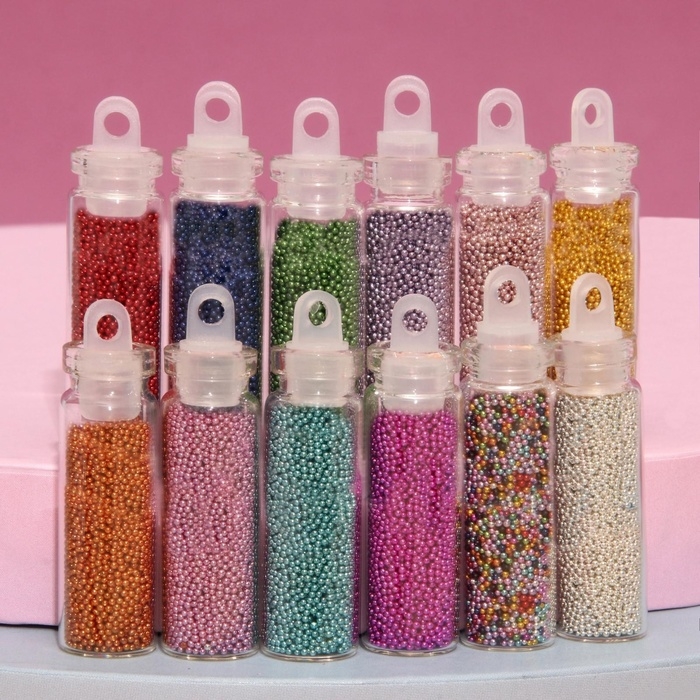 Бульонки для декора ногтей, набор 12 бутылочек, разноцветные