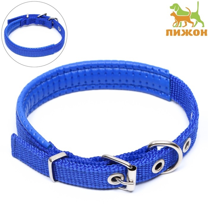 Ошейник "Комфорт" комбинированный (полиэстер, искусственная кожа), 39 х 1,5 см, ОШ 26-33 см, синий 6