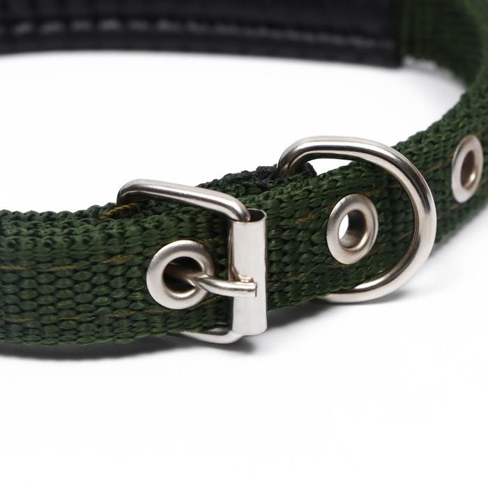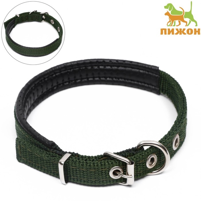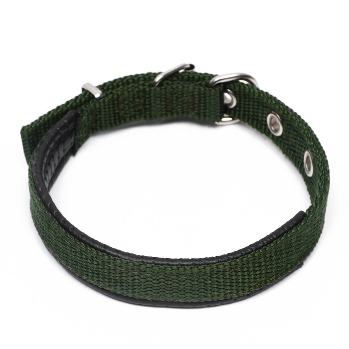 Ошейник "Комфорт" комбинированный (полиэстер, иск. кожа) 39 х 1,5 см, ОШ 28-35 см, тёмно-зелёный 609