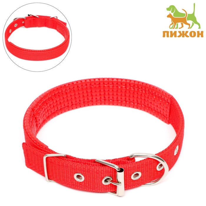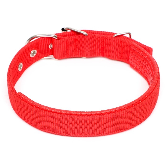 Ошейник "Комфорт" комбинированный (полиэстер, искусственная кожа), 58 х 3 см, ОШ 45-52 см, красный 6