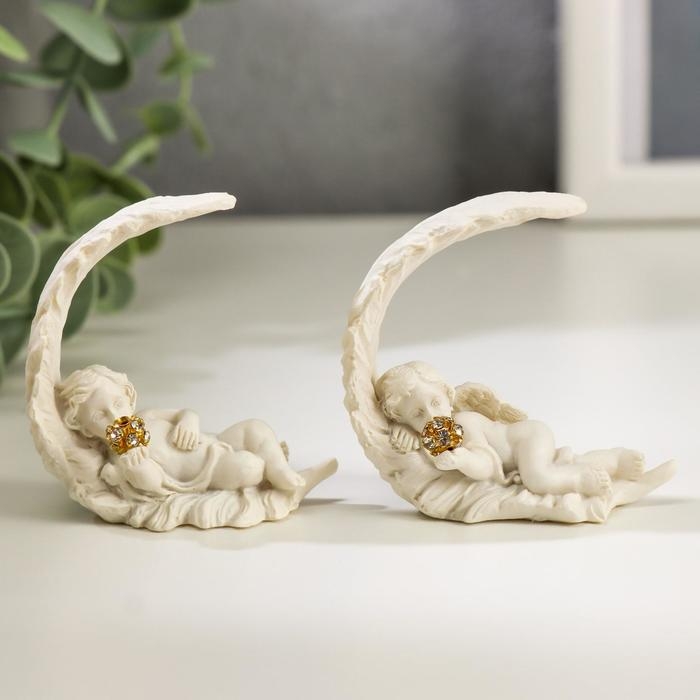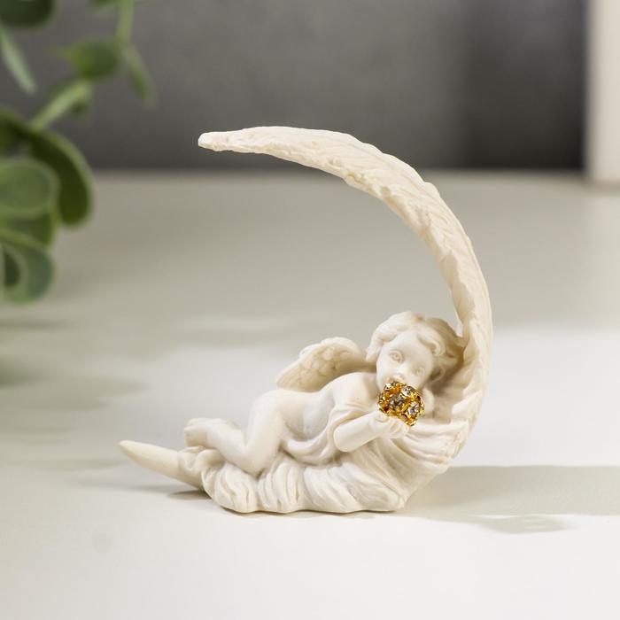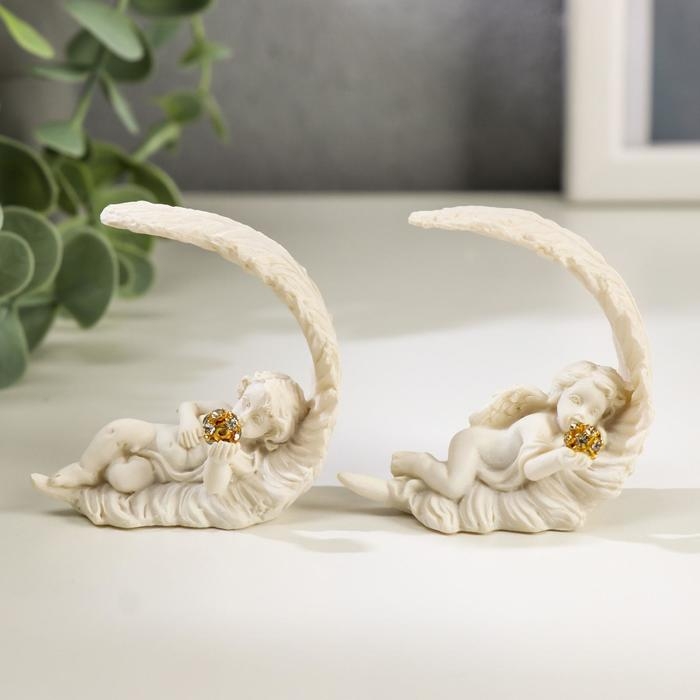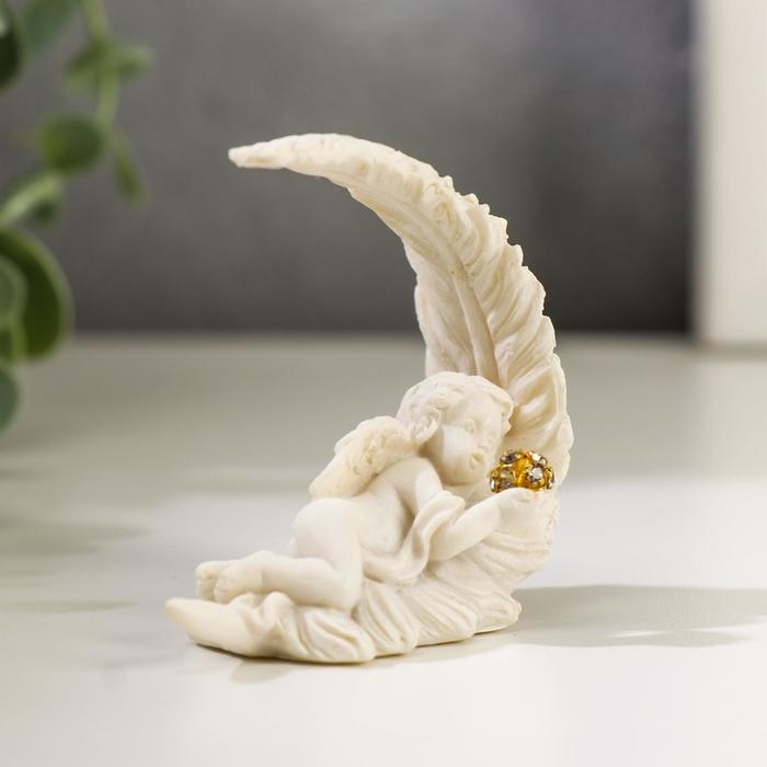 Сувенир полистоун "Белоснежный ангел спящий на перышке" МИКС, 5х5,5х2,5 см
