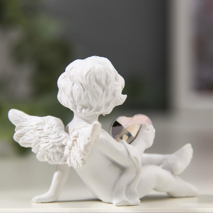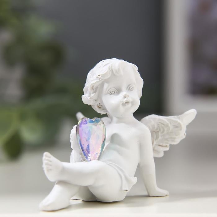 Сувенир полистоун "Белоснежный ангел хрустальное сердце" 5х6х3 см