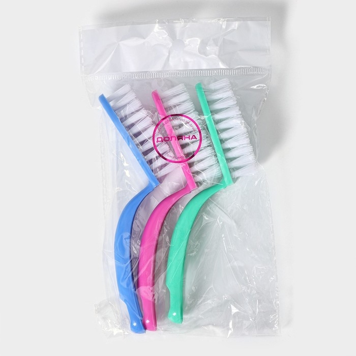 Набор щёток с изогнутой удлинённой ручкой Доляна, 15 см, 3 шт