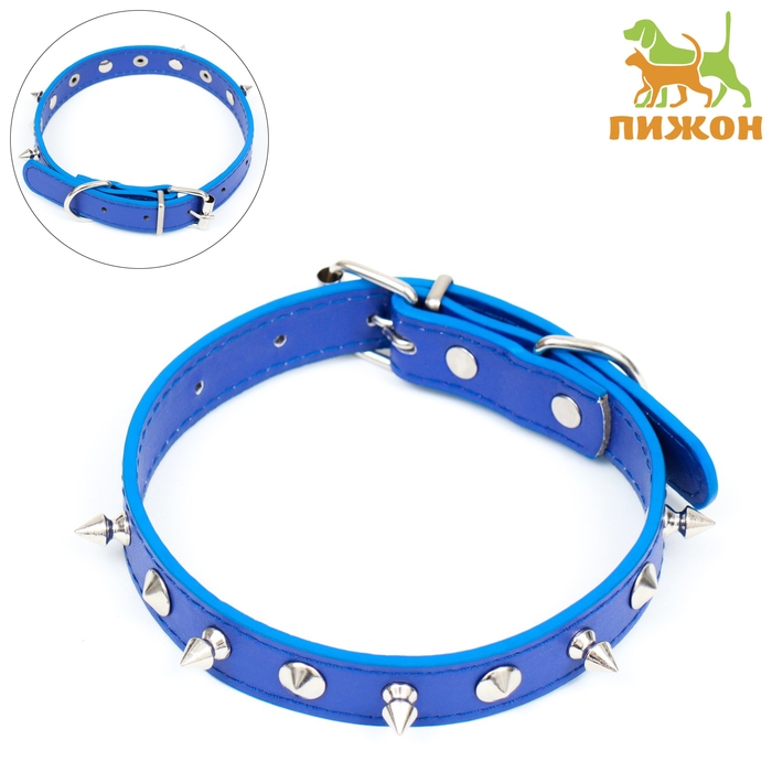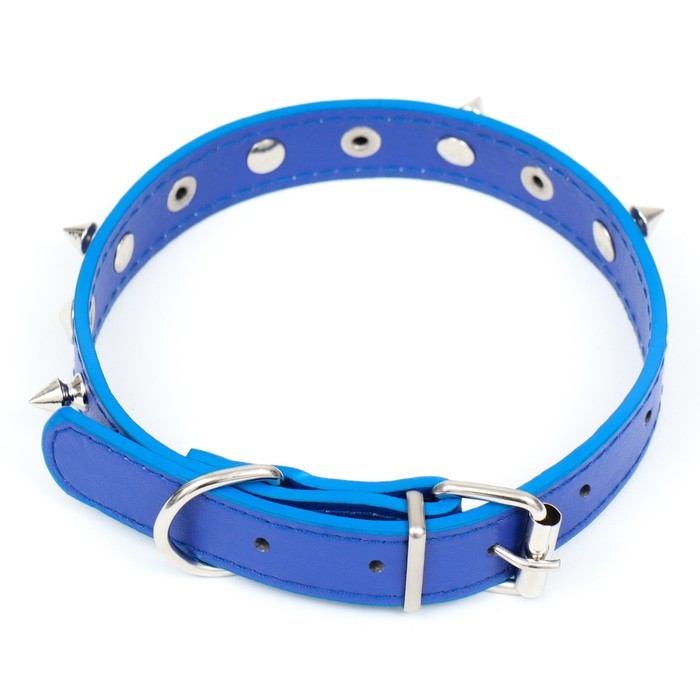 Ошейник "Лион" с шипами 45 х 2 см, ОШ 34-40 см, искусственная кожа, синий
