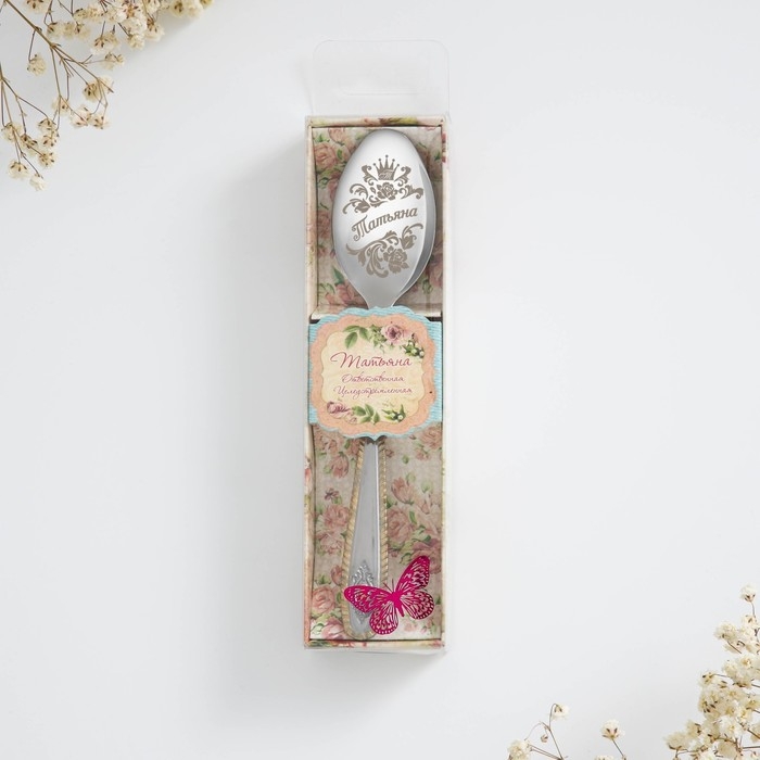 Ложка чайная с гравировкой «Татьяна», в подарочной коробке, 3 х 15 см.