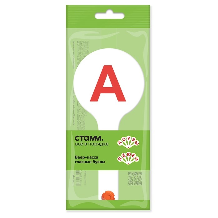 Веер-касса, гласные буквы, Стамм, пакет с европодвесом — прекрасное пособие для того, чтобы дети младшего возраста получили первые навыки чтения и письма.
