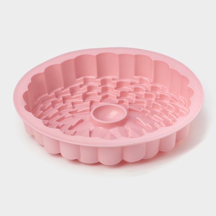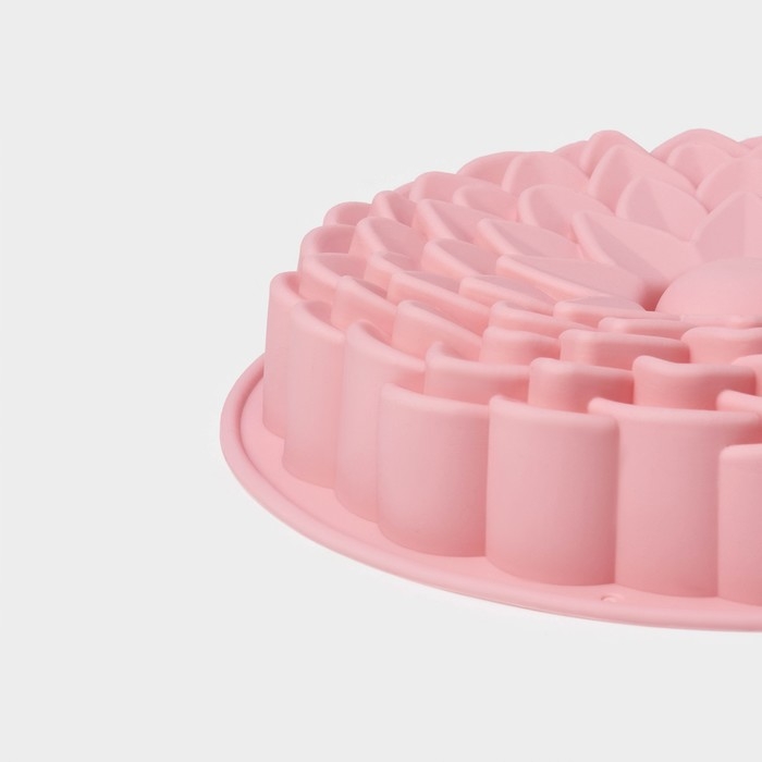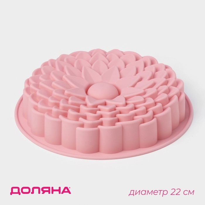 Форма для выпечки Доляна «Хризантема», силикон, d=22 см, цвет розовый