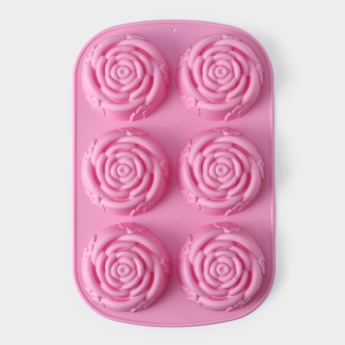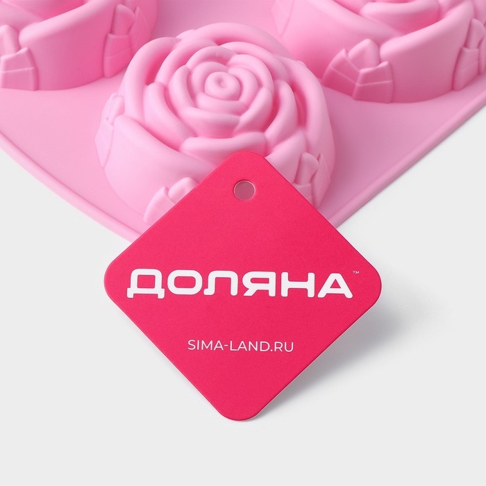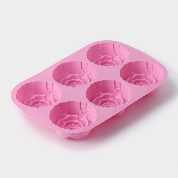 Форма для выпечки Доляна «Роза», силикон, 25,5×17,5 см, 6 ячеек, цвет розовый