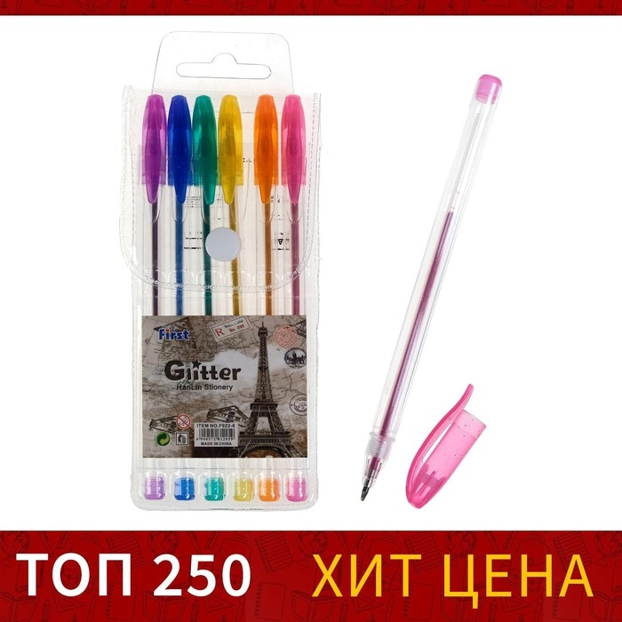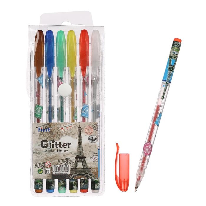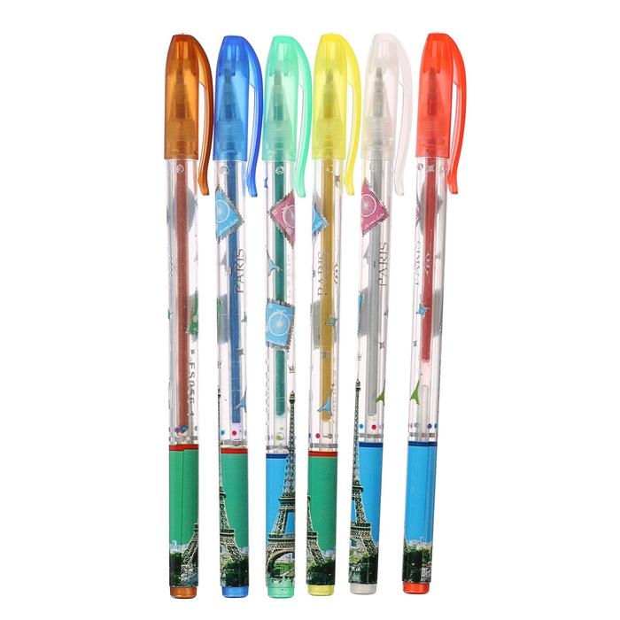 Набор гелевых ручек, 6 цветов, металлик, с блёстками, в блистере